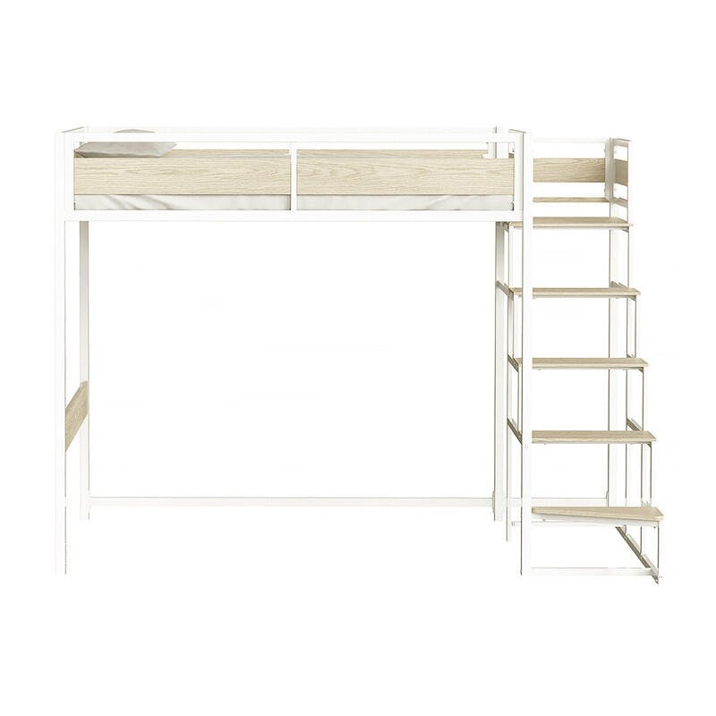 Hoogslaper met lattenbodem en omkeerbare trap in wit metaal en eikenhouten melamine - slaapoppervlak 140 x 190 cm - MONTANA